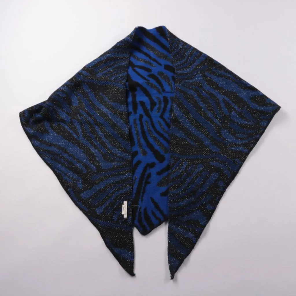 Трикотажный платок Pieces треугольной формы с синим и чёрным анималистичным принтом и лёгким блеском нити. Подойдёт для демисезона и прохладных вечеров, можно носить на шее или на плечах. Мягкий материал удобно драпируется и добавляет тепла без лишнего...