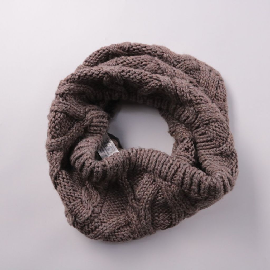 Вязаный снуд Seeberger коричневого оттенка с объёмным узором «косы». Подойдёт для зимних прогулок и повседневной носки, хорошо сочетается с пальто и пуховиками. Удобен тем, что надевается одним движением и не развязывается на ветру.