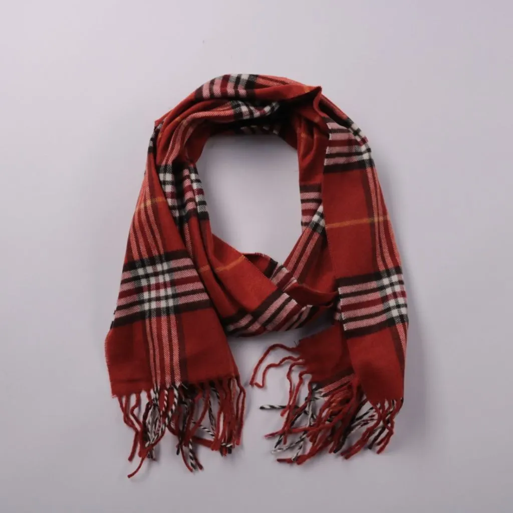 Шарф Cashmink в красную клетку с бахромой по краям. Подойдёт для повседневной носки в холодную погоду и легко сочетается с однотонной верхней одеждой. Материал из 100% полиакрила практичен в уходе и быстро сохнет.