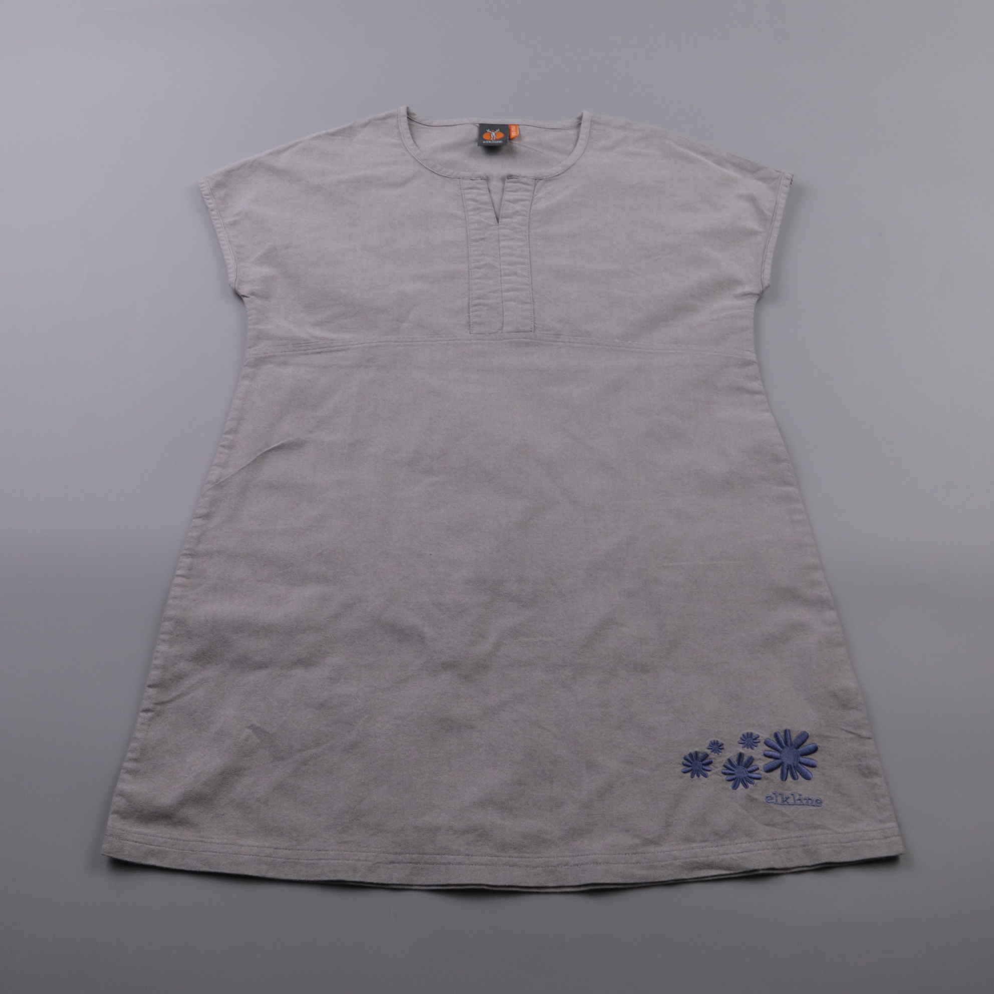 Детское платье Elkline серого цвета с коротким рукавом и вышивкой цветов по низу. Подойдёт для повседневной носки в садик или школу, а также для прогулок в тёплую погоду. Натуральный хлопок приятен к телу и хорошо дышит.