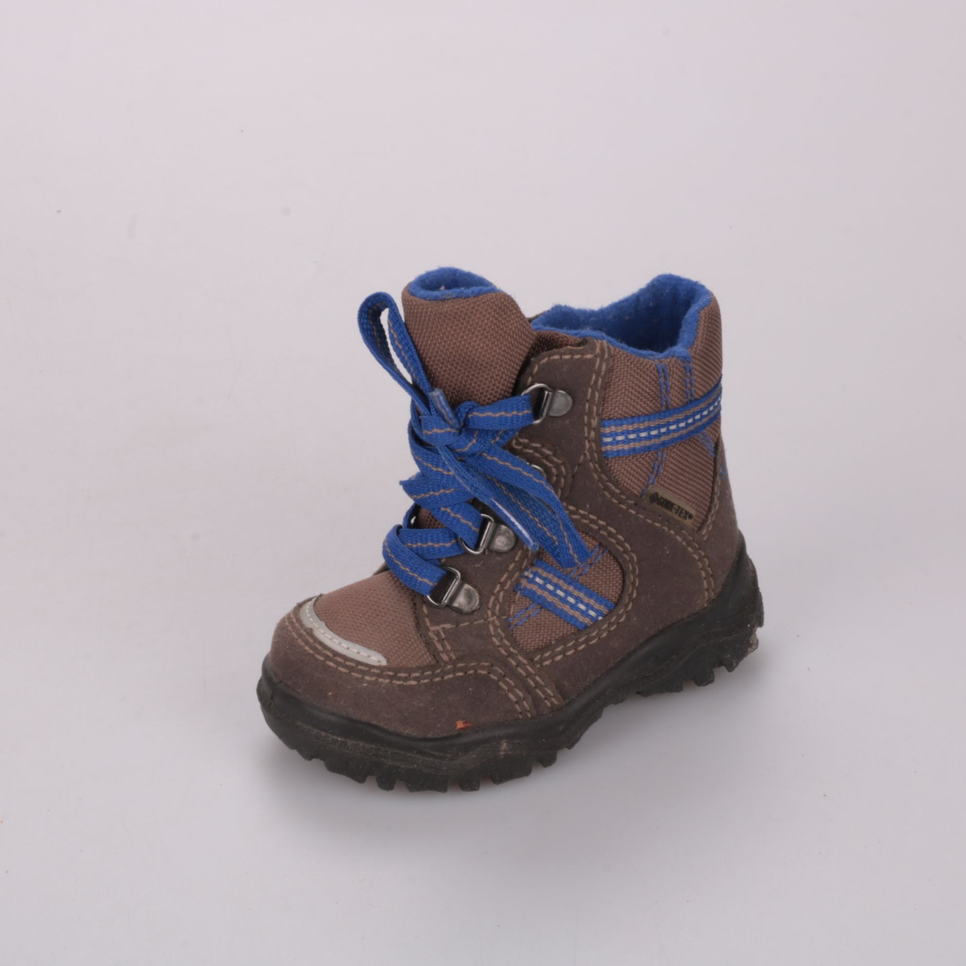 Зимние ботинки Superfit для мальчика: коричневые с синими шнурками и мягкой утеплённой подкладкой. Подойдут для прогулок в холодную погоду, высокий берец хорошо фиксирует голеностоп. Рельефная подошва помогает меньше скользить на улице.