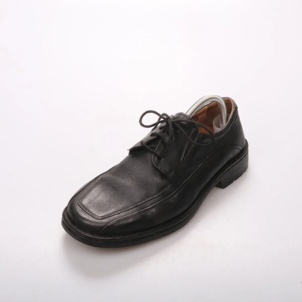 Мужские туфли Josef Seibel из чёрной натуральной кожи на шнуровке с квадратным мысом. Подойдут для офиса и повседневной носки в демисезон. Практичная подошва с протектором даёт устойчивость и меньше скользит.