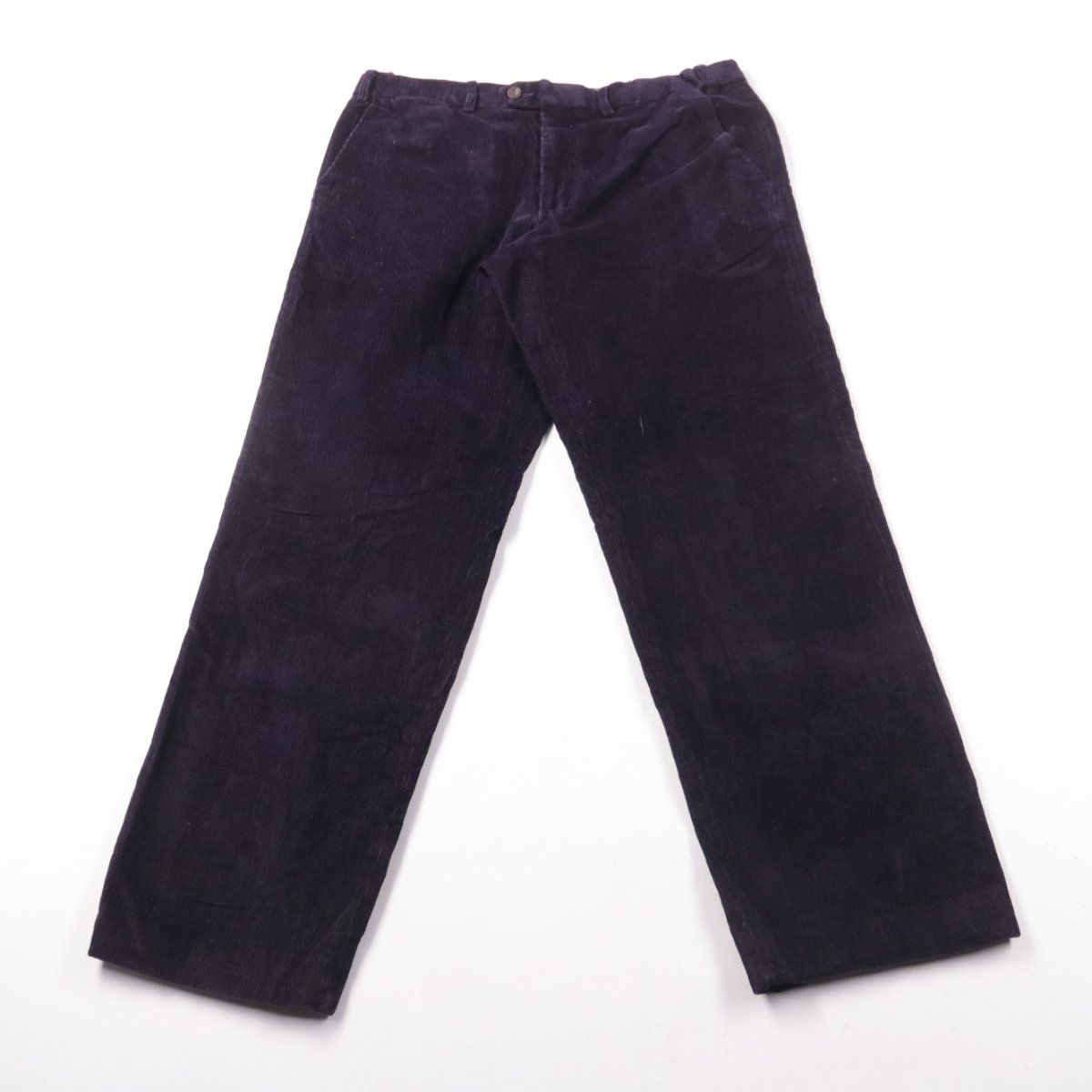 Мужские вельветовые брюки M&S тёмно-фиолетового (purple) цвета, прямого кроя. Подойдут для повседневной носки и спокойного офисного стиля в прохладное время. Хлопковая ткань с добавлением эластана даёт более комфортную посадку и меньше стесняет движения.