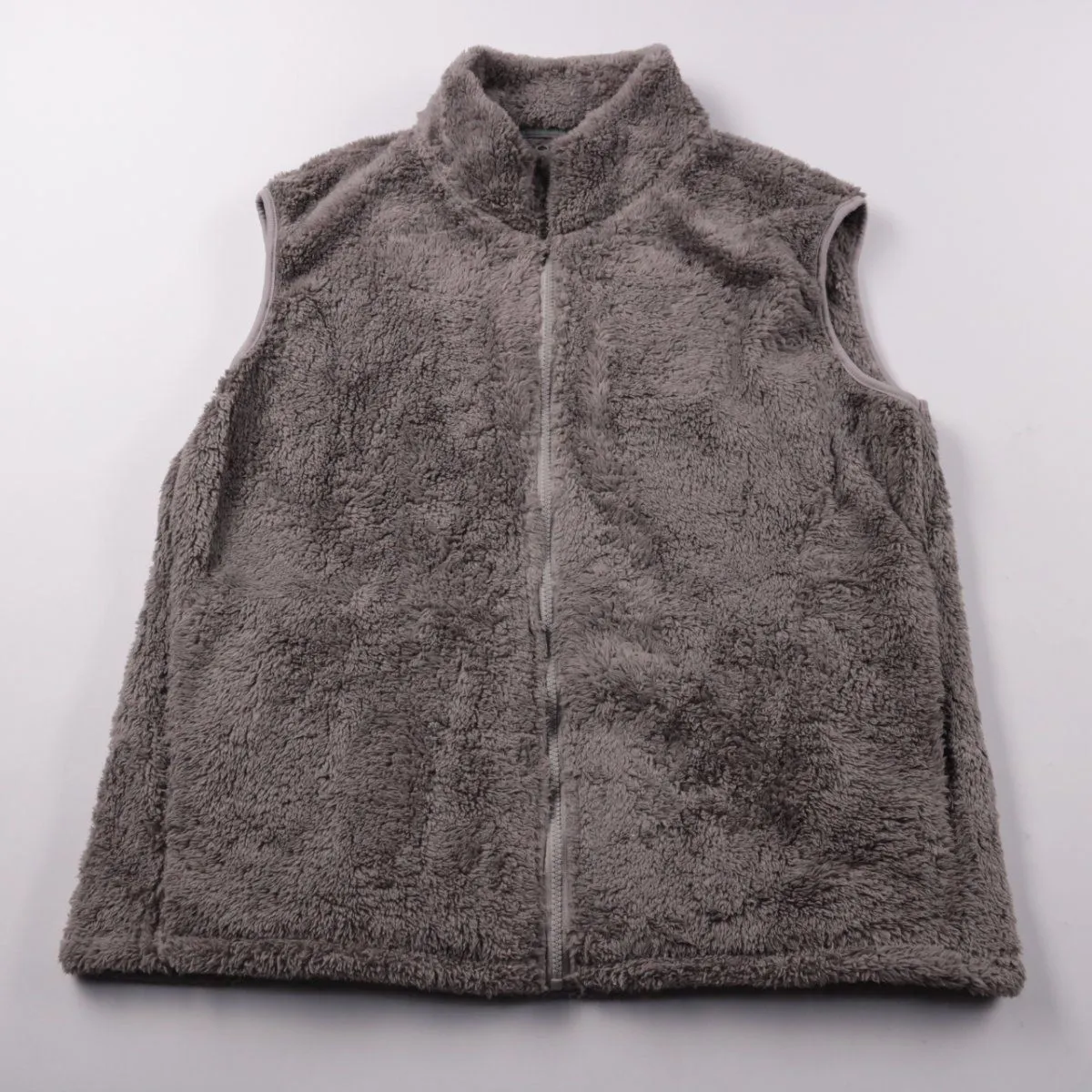 Флисовый жилет без бренда на молнии, мягкий и тёплый, серого цвета. Подойдёт для прогулок и как дополнительный слой под куртку в прохладную погоду. Лёгкий и быстро сохнет, удобен в дороге.
