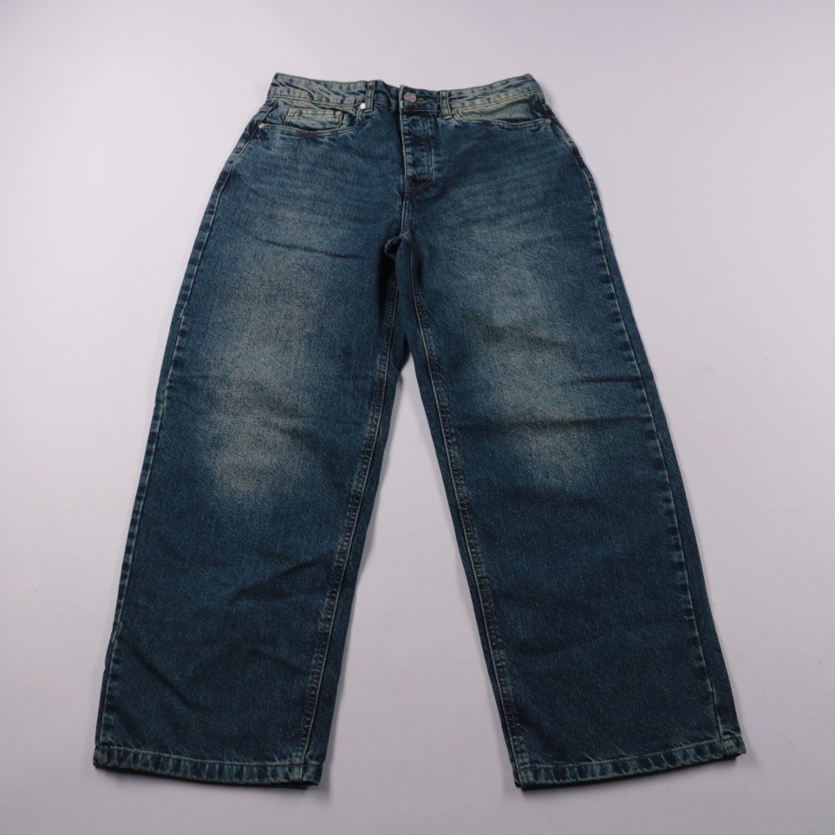 Мужские джинсы BoohooMAN из синего денима с лёгкими потертостями. Подойдут для повседневной носки и уличного стиля, хорошо сочетаются с кедами и кроссовками. Плотная ткань держит форму и рассчитана на частую носку.