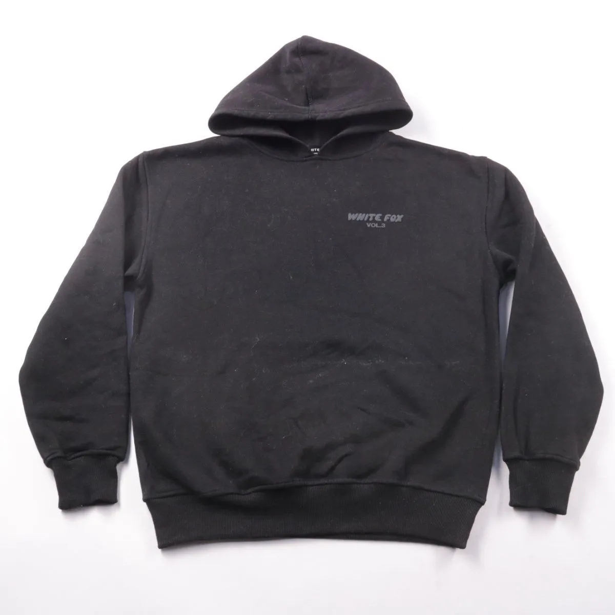Худи White Fox чёрного цвета с принтом/логотипом на груди и спине и капюшоном. Подойдёт для повседневной носки и прохладной погоды, удобно комбинируется с джинсами и спортивными брюками. Практичный плюс — смесовый состав хлопок/полиэстер, который хорошо держит форму.