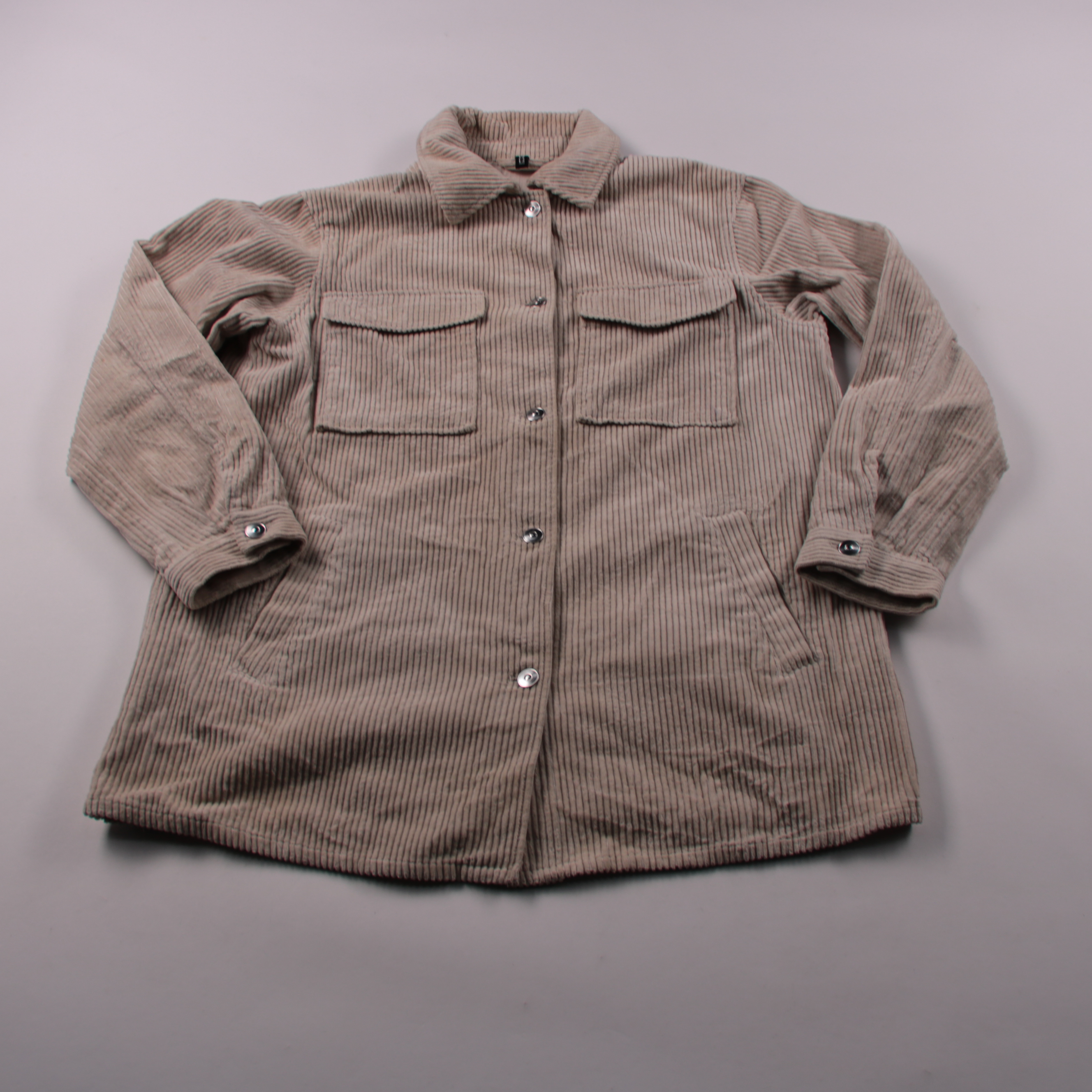 Вельветовая рубашка-куртка H&M в бежевом цвете с длинным рукавом и накладными карманами. Подойдёт для демисезона как верхний слой поверх футболки или худи в повседневных образах. Плотный хлопок хорошо держит форму и практичен в носке.