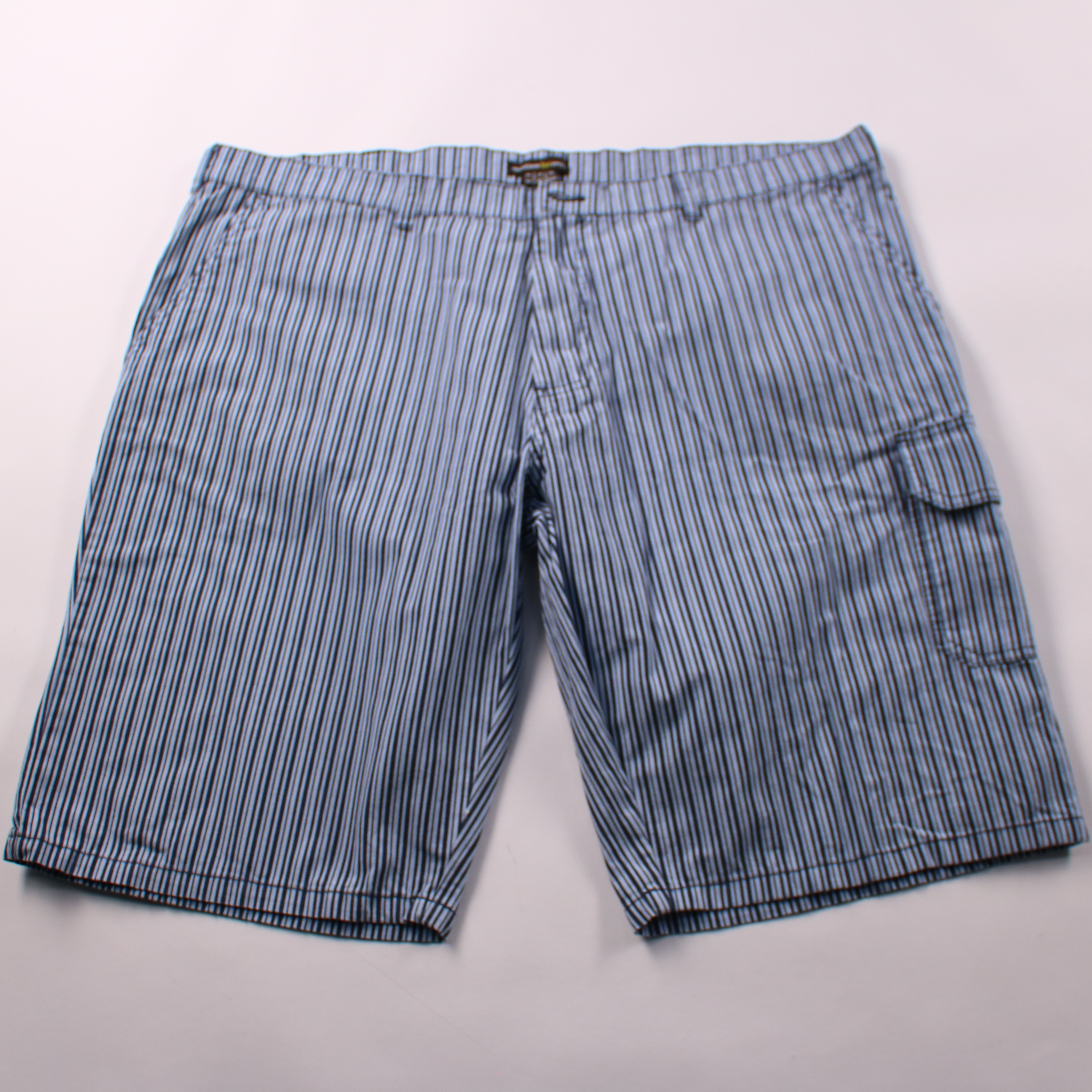 Мужские шорты Atlas For Men из 100% хлопка в голубую полоску, с боковым карманом-карго. Подойдут для повседневной носки, отпуска и прогулок в тёплую погоду. Натуральная ткань хорошо дышит и комфортна в жару.