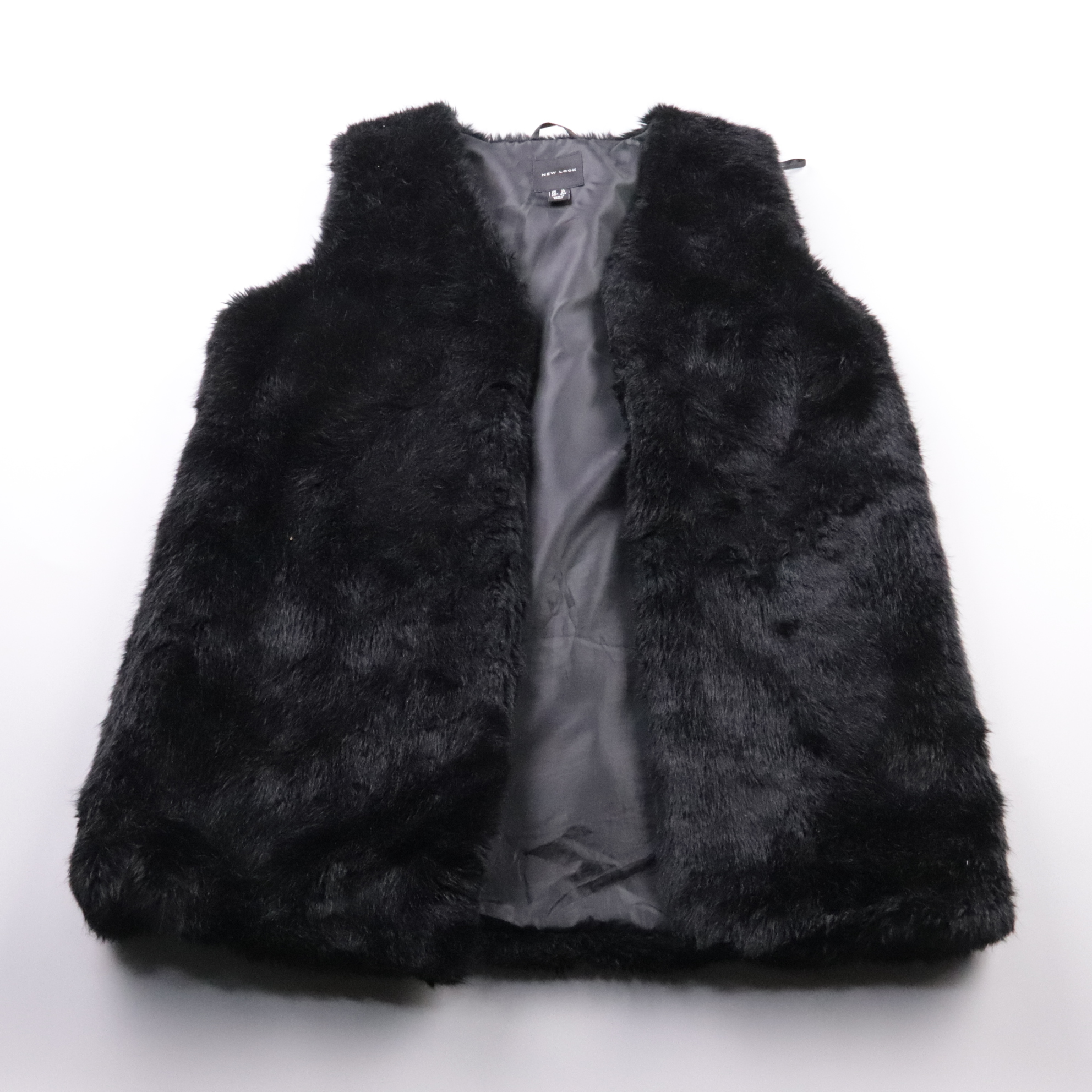 Меховой жилет New Look из искусственного меха чёрного цвета, без застёжки. Подойдёт для повседневных образов и вечерних выходов в прохладную погоду, легко сочетается с водолазками и платьями. Лёгкий и тёплый, удобно носить как верхний слой.