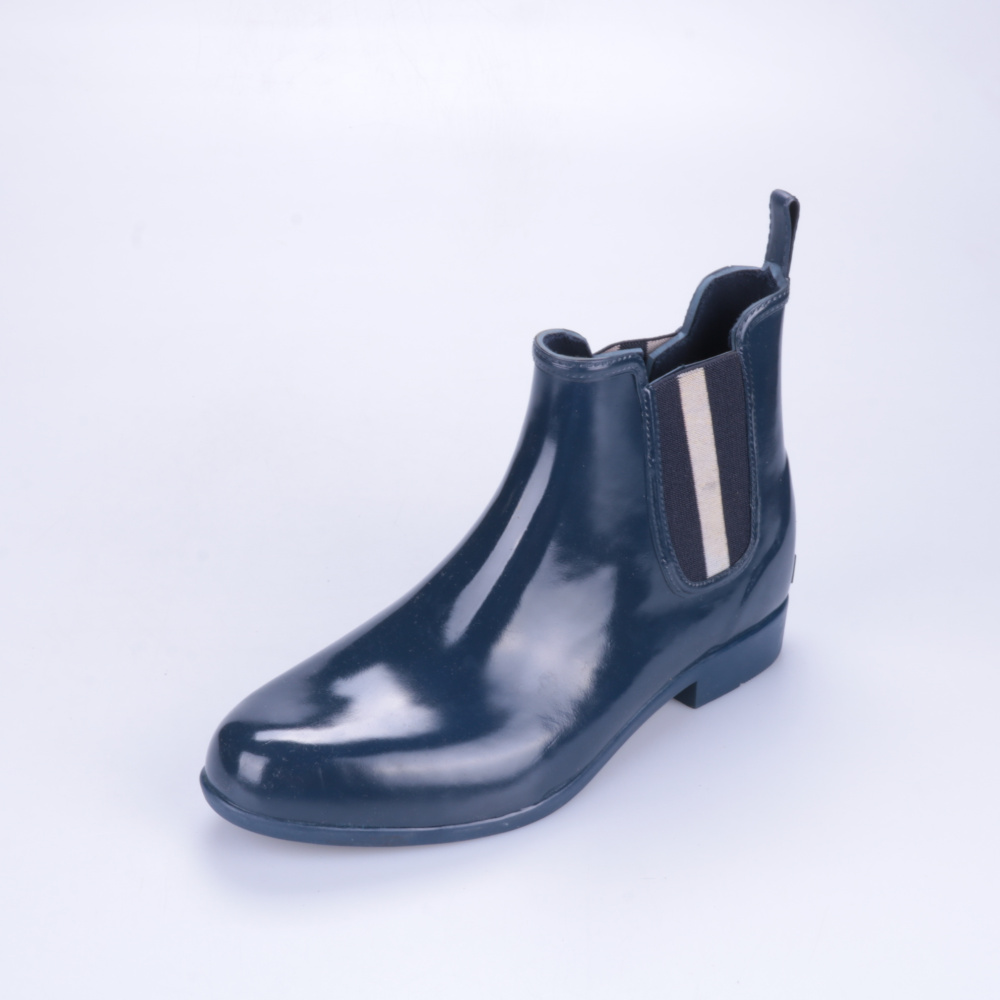 Резиновые ботинки Rouchette тёмно-синего цвета с эластичными боковыми вставками, удобны для дождливой погоды и слякоти. Подойдут для города и прогулок в межсезонье, легко сочетать с джинсами и плащом. Непромокаемый материал быстро моется и не требует с...
