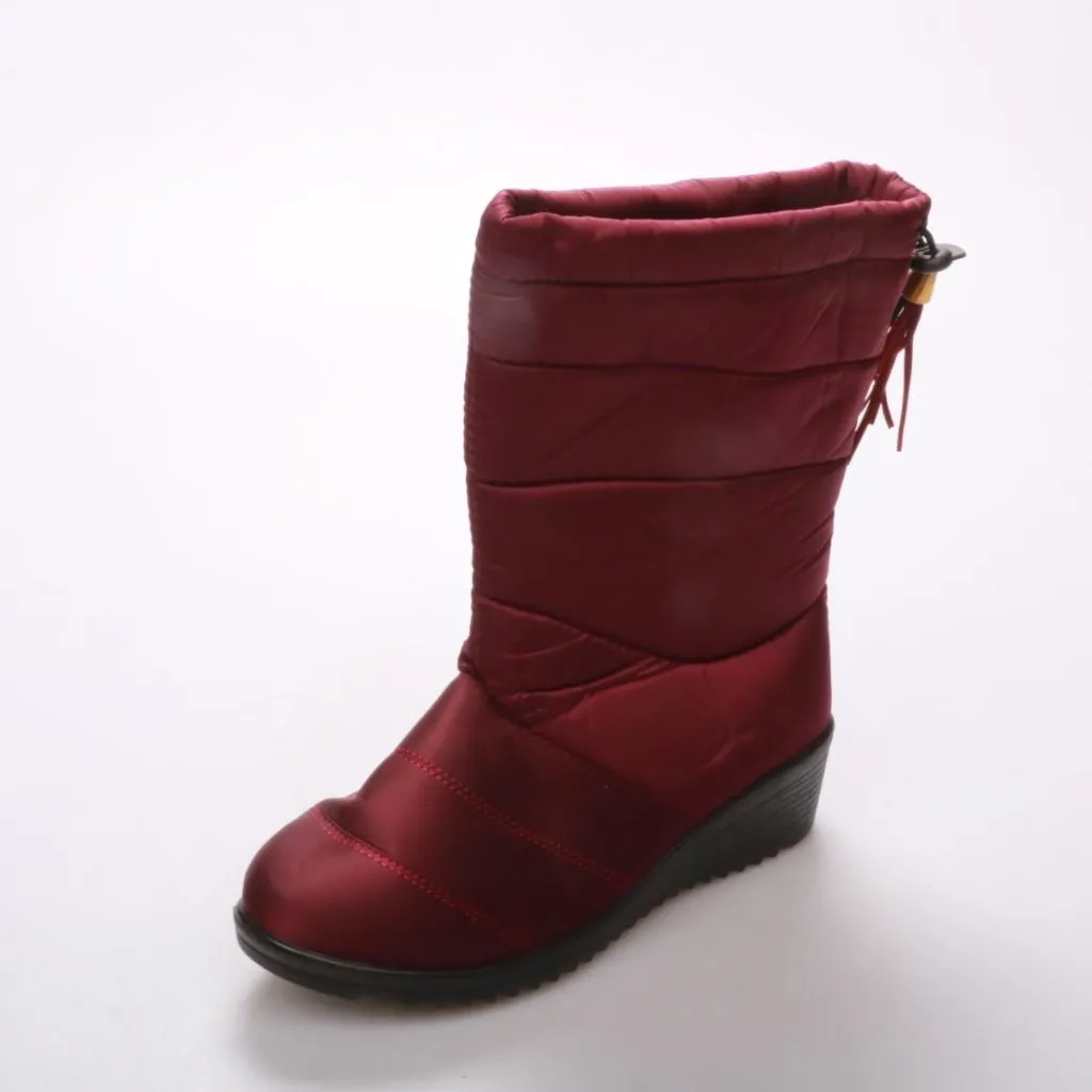 Женские дутики Tinnian бордового цвета с утеплённым стёганым голенищем и устойчивой танкеткой. Подойдут для зимних прогулок и повседневной носки в холодную погоду. Практичное преимущество — рифлёная подошва даёт лучшее сцепление на скользкой поверхности.