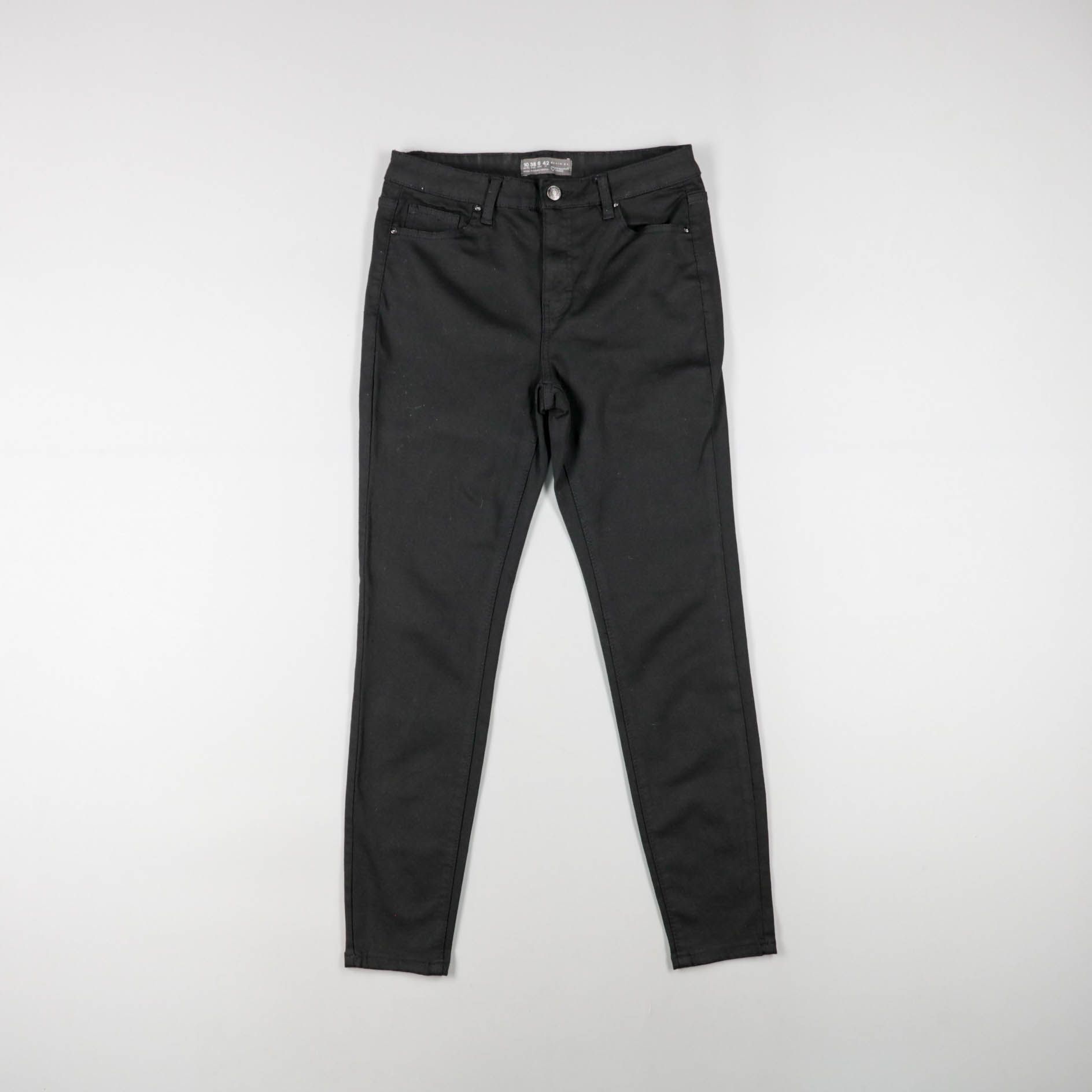 Женские черные брюки зауженного кроя с классической посадкой и пятью карманами. Подойдут для повседневных образов и офиса с базовыми вещами и обувью на низком ходу. Плотная ткань хорошо держит форму и не требует сложного ухода.