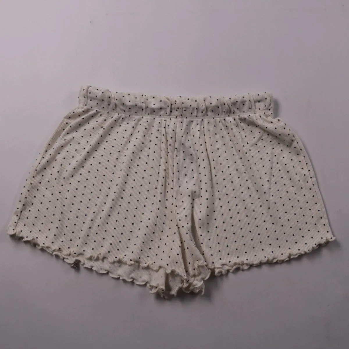 Женские трусы-шорты Primark Cares белого цвета в мелкий чёрный горох, с эластичным поясом и волнистой обработкой края. Подойдут для дома и сна, комфортно сидят за счёт мягкого трикотажа в рубчик. Тянущийся материал с добавлением эластана удобно садится по фигуре.