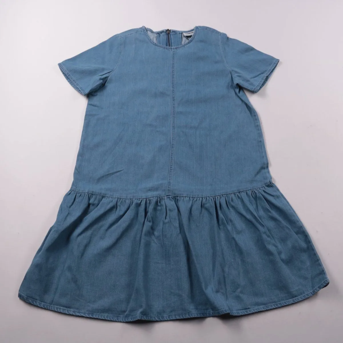 Повседневное джинсовое платье Noisy May из хлопка, прямого кроя с коротким рукавом и присборенной юбкой. Подойдёт для города и прогулок в тёплую погоду, легко сочетается с кедами и сандалиями. Натуральная ткань хорошо дышит и комфортна в носке.