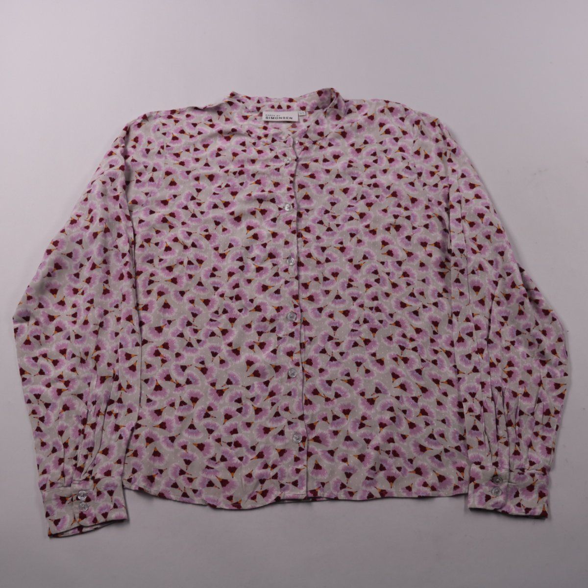 Блузка Karen by Simonsen с длинным рукавом и застёжкой на пуговицы, выполнена из мягкой вискозы с принтом. Подойдёт для офиса и повседневных образов в демисезон. Лёгкий материал комфортно носить в помещении и под жакет.