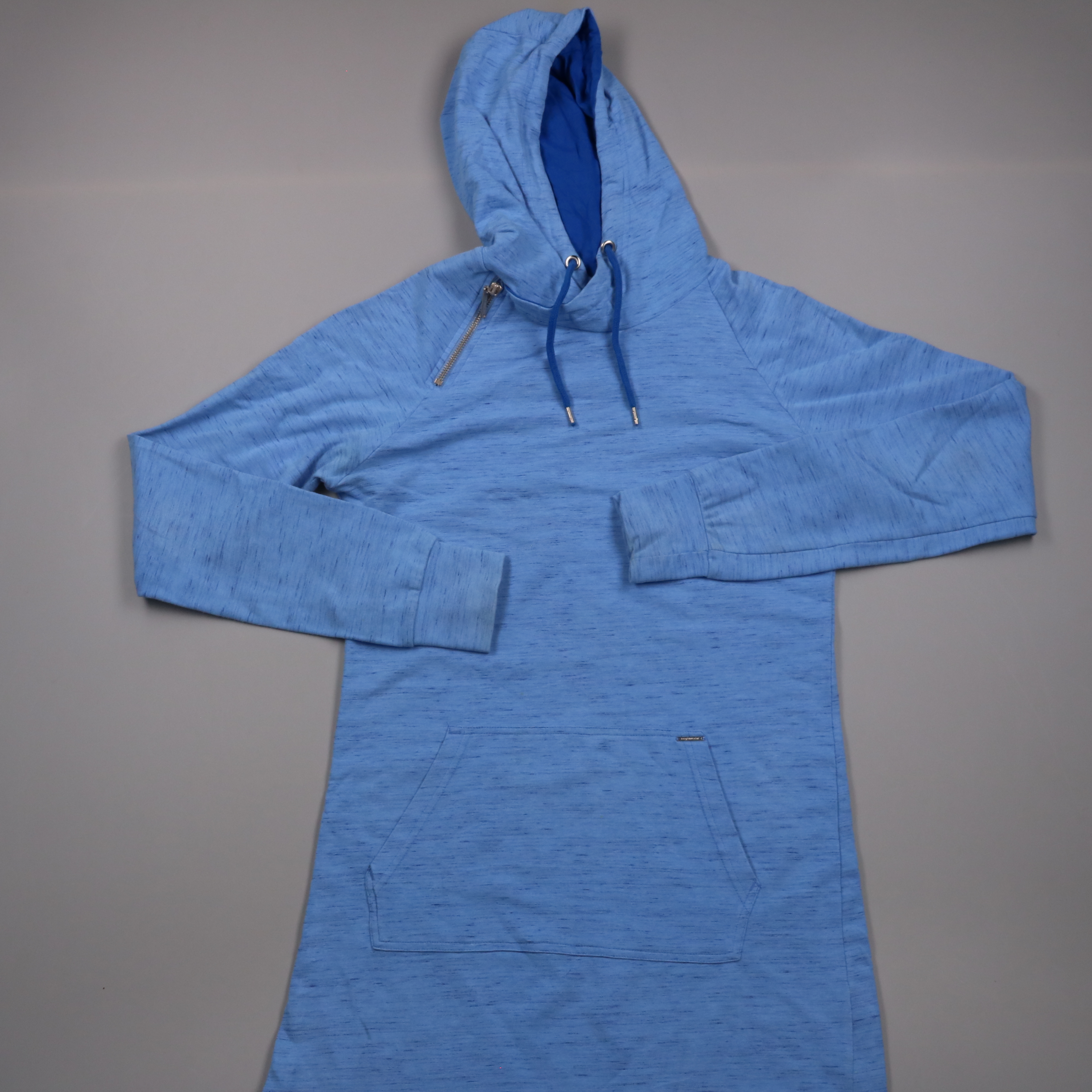 Женская толстовка-худи Mywear голубого цвета с капюшоном, шнурком и карманом-кенгуру. Подойдёт для прогулок, поездок и повседневной носки в демисезон. Практичная ткань с добавлением эластана хорошо тянется и не сковывает движения.