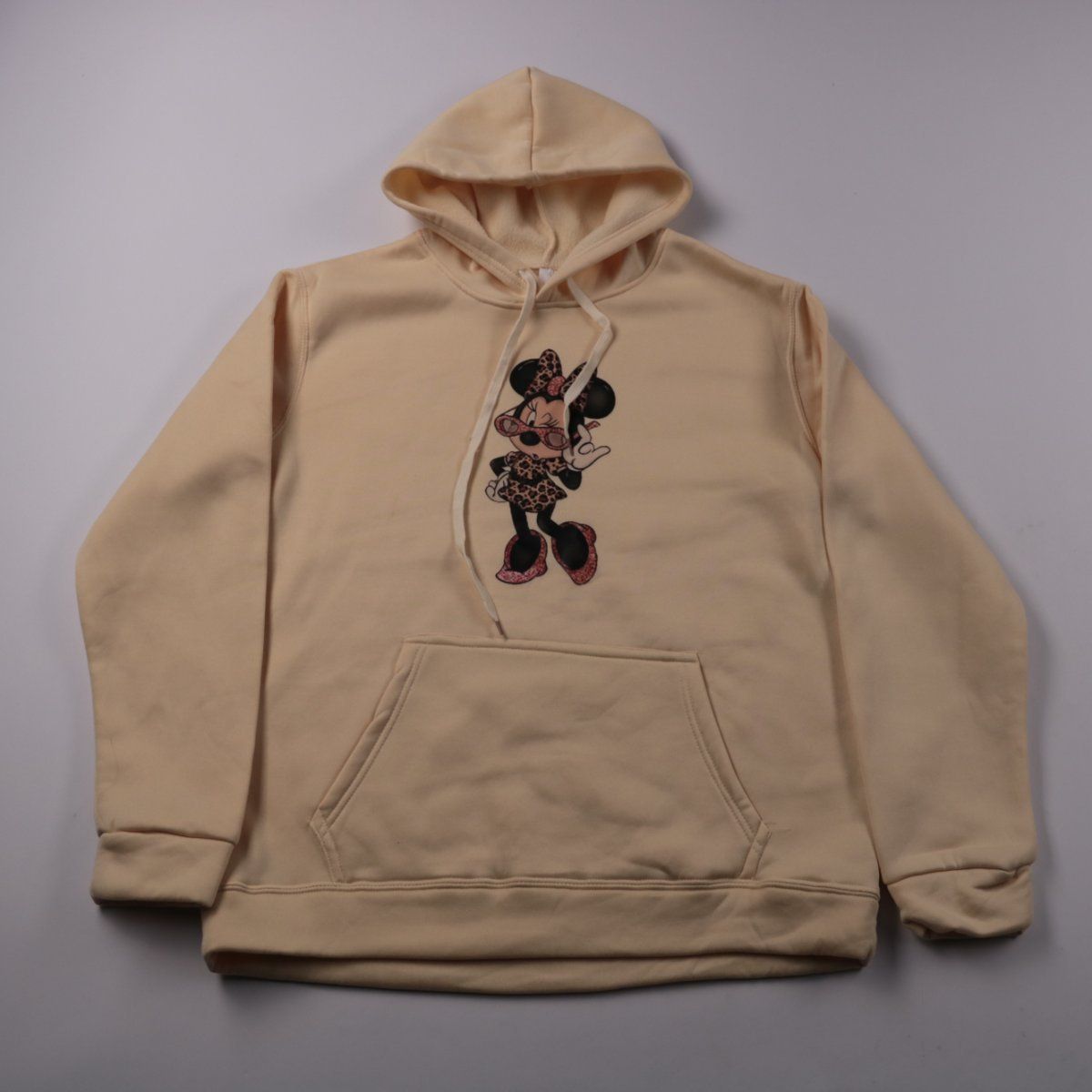 Толстовка-худи с капюшоном и карманом-кенгуру, с принтом Minnie Mouse спереди. Подойдёт для прогулок и повседневных образов в прохладную погоду. Мягкая ткань и свободный крой обеспечивают комфорт и легко сочетаются с джинсами и спортивными брюками.