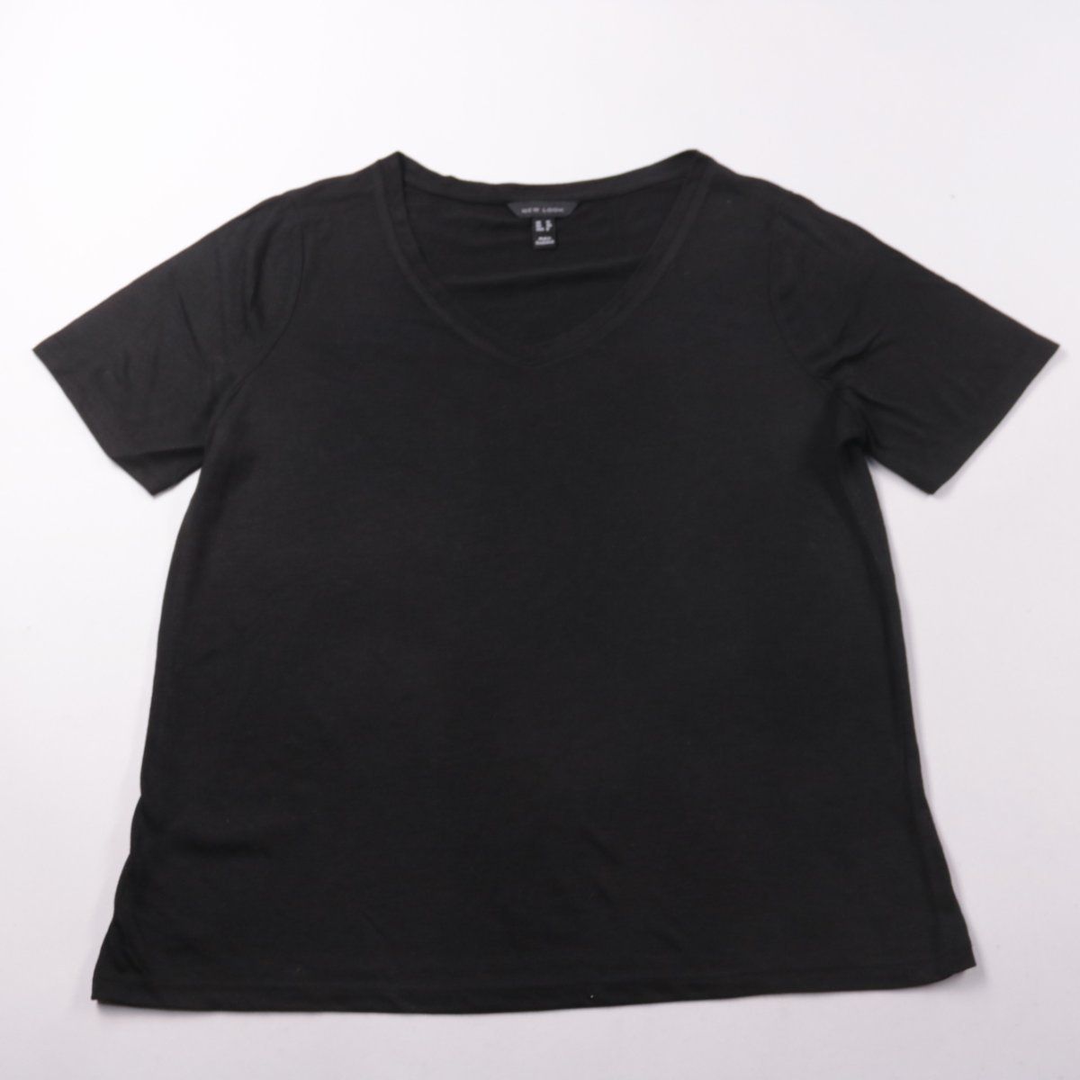 Футболка New Look чёрного цвета с V-образным вырезом и коротким рукавом. Подойдёт для повседневных образов и как базовый слой под жакет или кардиган. Практична тем, что легко сочетается с любым низом.