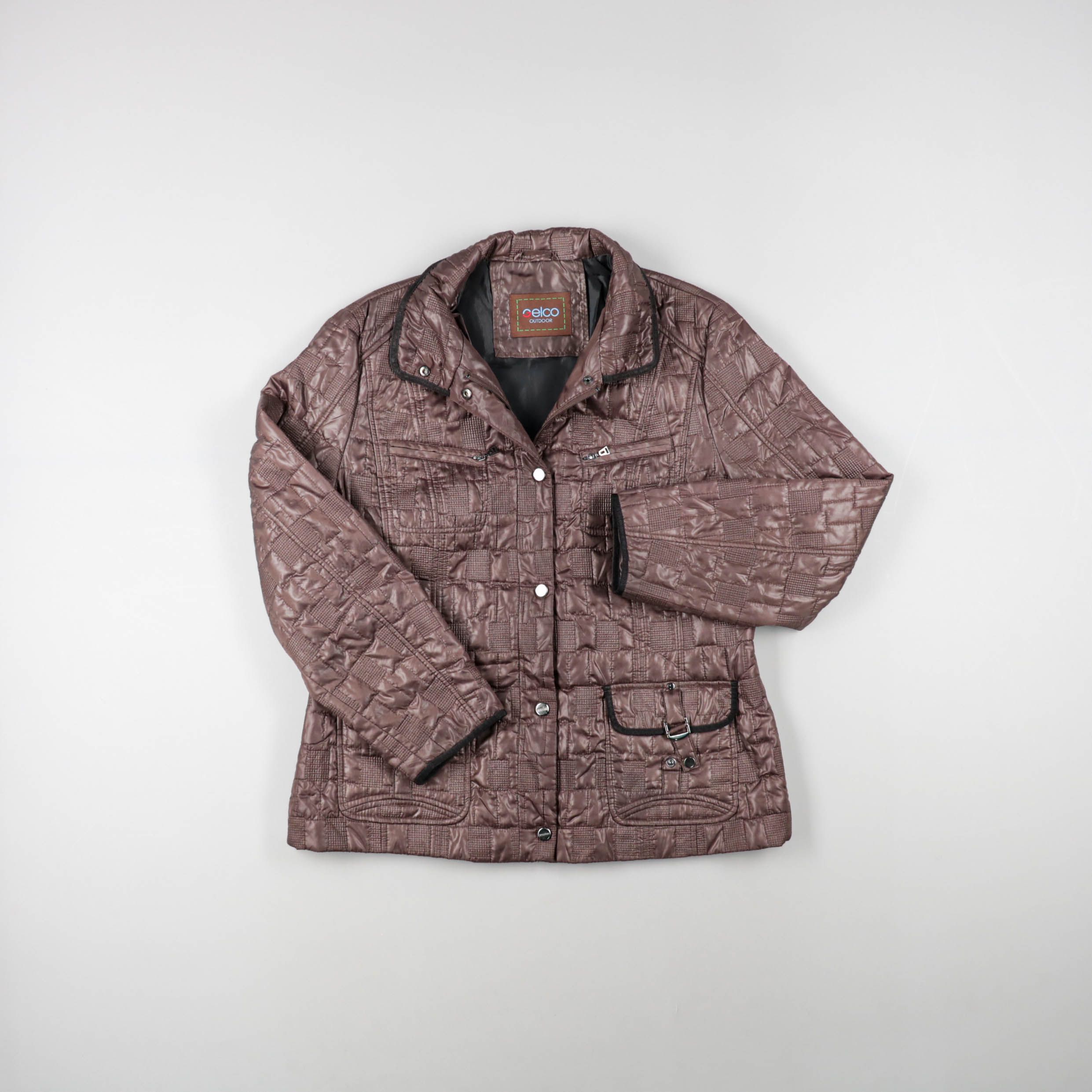 Стёганая демисезонная куртка Celco в коричневом цвете, с воротником-стойкой и застёжкой на кнопки. Подойдёт для прохладной погоды весной и осенью, удобно сочетается с повседневными образами. Практичные карманы и плотная стёжка помогают сохранять тепло ...