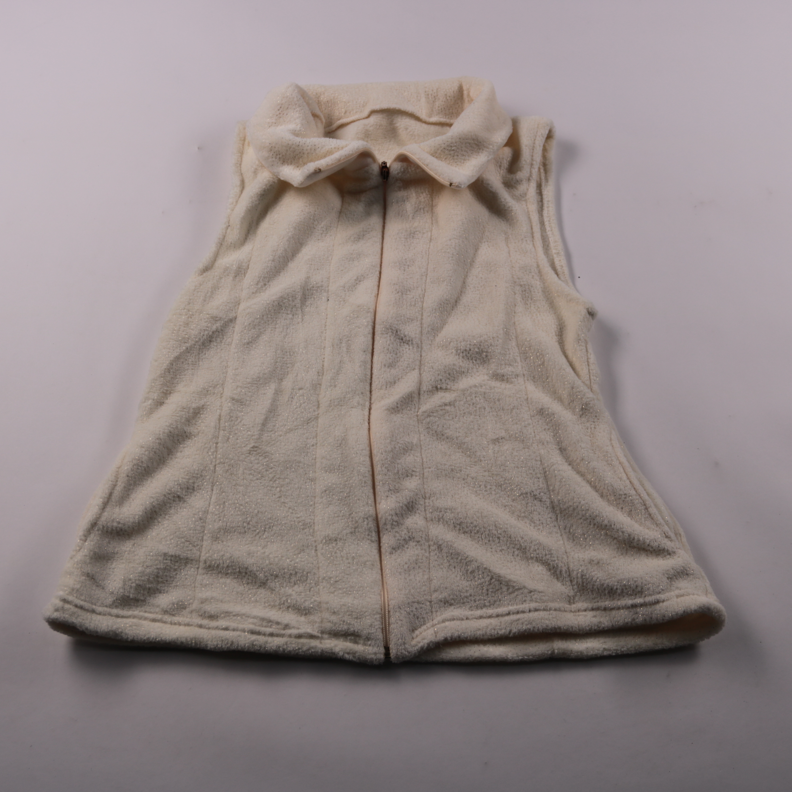 Детский жилет без бренда на молнии, мягкий и приятный на ощупь в светлом оттенке. Подойдёт для прохладной погоды в детский сад, на прогулки или как дополнительный слой под куртку. Практичен тем, что легко надевается и не стесняет движения.