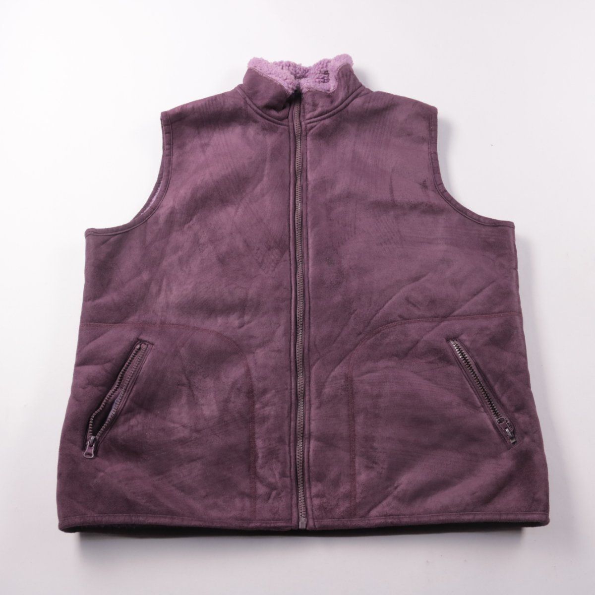 Женский утеплённый жилет PORTRAITS баклажанового оттенка, на молнии, с мягкой подкладкой под овчину. Подойдёт для прогулок и поездок в прохладную погоду, удобно носить поверх свитера или худи. Есть два боковых кармана на молниях — мелочи не потеряются.
