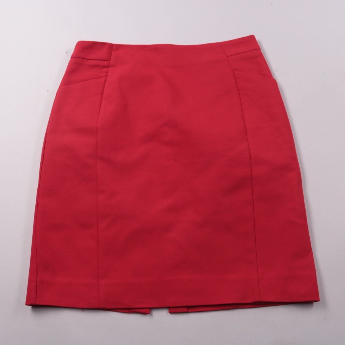 Юбка-карандаш H&M красного цвета с высокой посадкой и задним разрезом. Подойдёт для офиса и повседневных образов с блузками и жакетами. Ткань с эластаном слегка тянется и комфортно сидит по фигуре.
